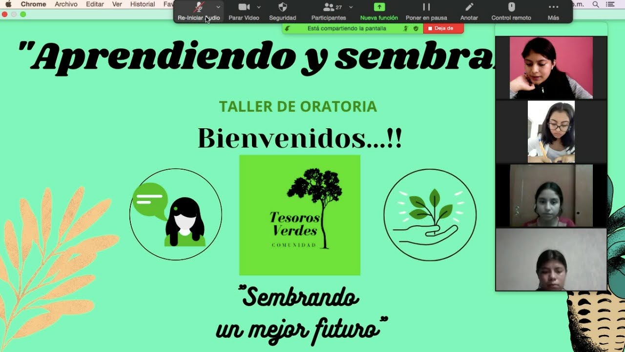 Finalmente, cree la iniciativa de Aprendiendo y sembrando, donde mezclé una de mis más grandes pasiones y mi compromiso con el medio ambiente. Enseñando el arte de la oratoria a niñas, niños y jóvenes a cambio de que cada uno sembrara dos árboles. Involucrando a la niñez y la juventud oaxaqueña de entre 9 y 18 años, provenientes de más de 8 poblaciones diferentes en acciones que contribuyen al cumplimiento de los Objetivos de Desarrollo Sostenible al mismo tiempo que aprenden una gran herramienta para su desarrollo personal.